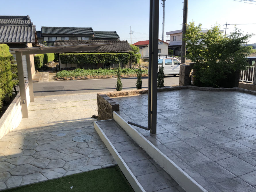 和風の舗装とスタンプコンクリートのテラス 福岡 北九州 エクステリア 外構 庭のデザイン 遊庭風流