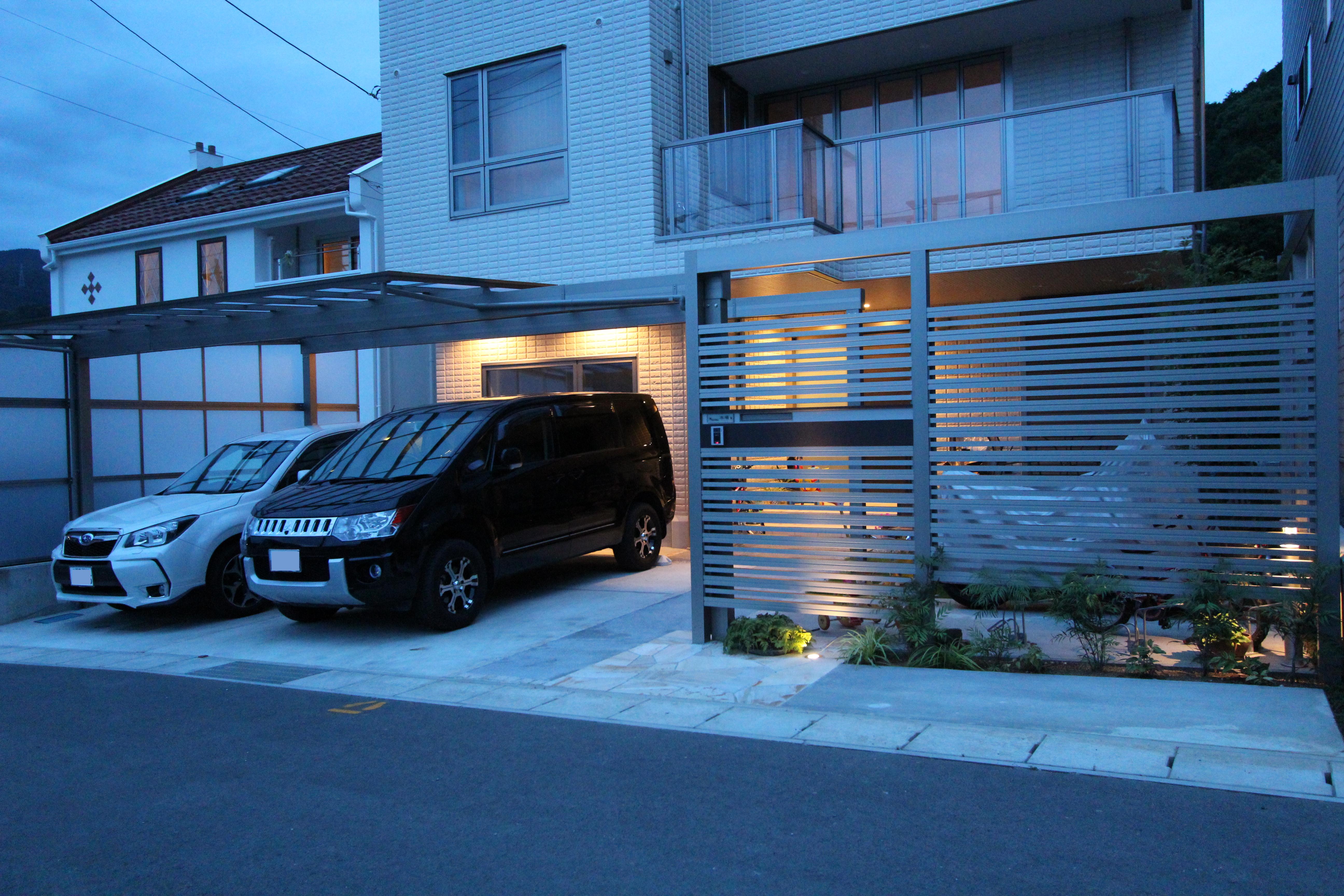 埋め込みライトで横スリットを照らして Gフレームのスタイリッシュな外構 山北町 平塚市 新築 リフォーム エクステリア アトラスホーム