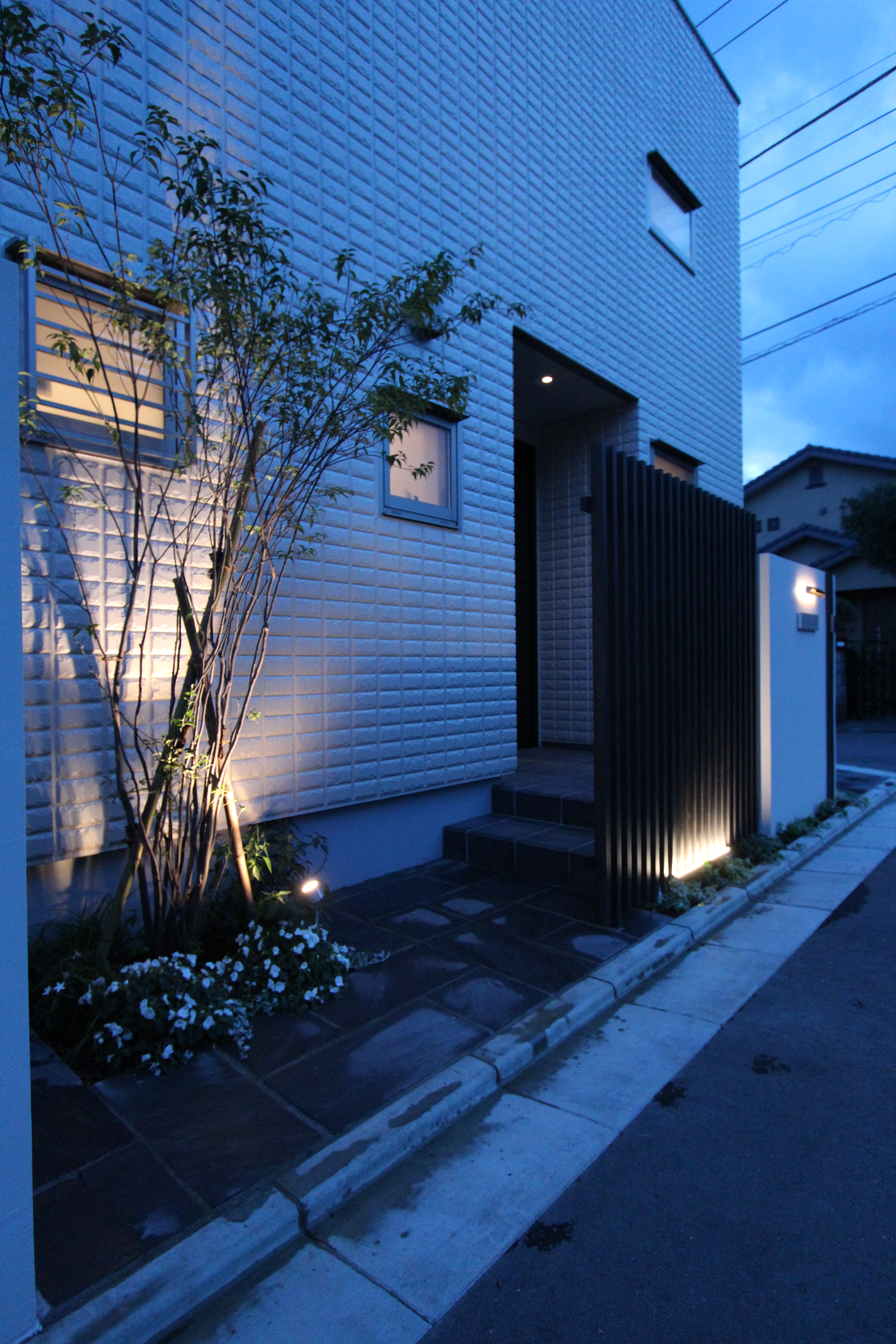 埋め込みライトとスポットライトで建物に影を映して 秦野市 平塚市 新築 リフォーム エクステリア アトラスホーム