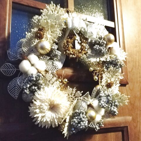 Creema限定 シャンパンリース アーティフィシャルフラワー 冬支度ハンドメイド19 クリスマス企画19 フラワー リース Akarinoheya 通販 Creema クリーマ ハンドメイド 手作り クラフト作品の販売サイト