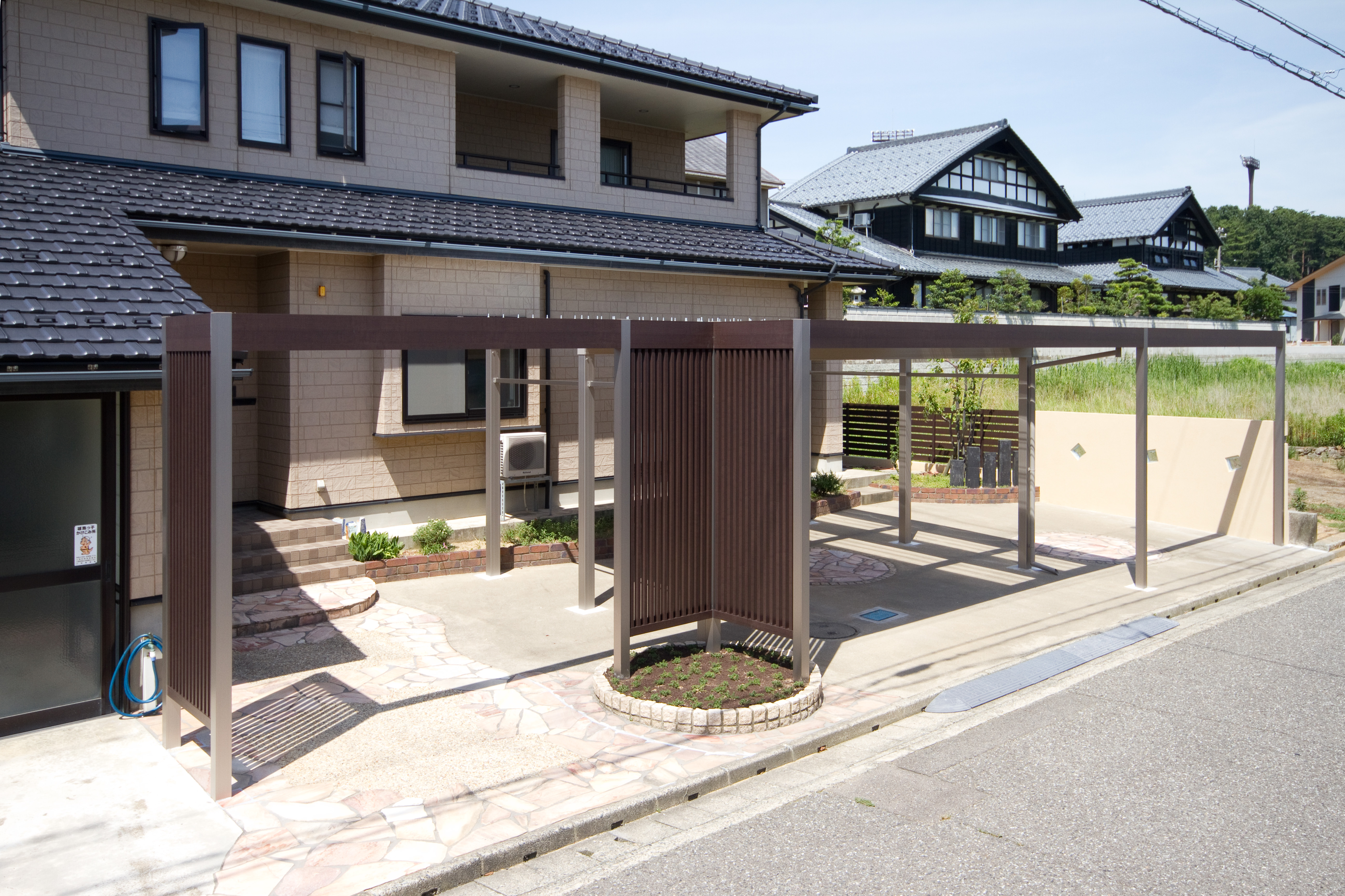 変形型駐車場スペースにエクステリアカーポート 福井市 福井県 カーポート エクステリア 福井ミニハウス