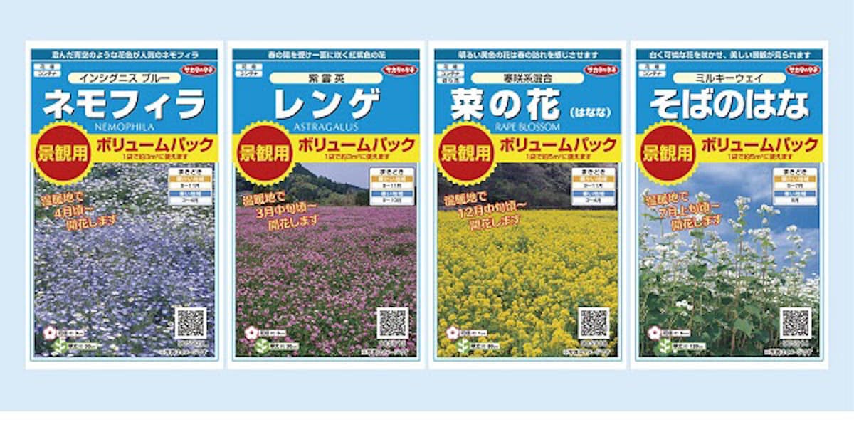 サカタのタネ 絵袋種子 実咲 シリーズ 景観用ボリュームパック ネモフィラ レンゲ 菜の花 そばのはな を発売 日本経済新聞