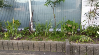 山茶花の庭 プランツキラーの庭づくり グラジオラスに支柱を