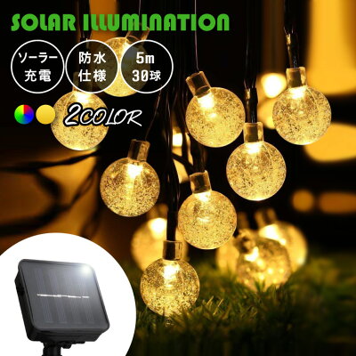 ソーラー イルミネーション 屋外用 ストレート 気泡 バブルボール型 30球 5m 全2色 Led 防水 防雨 クリスマス ストリング ドロップ 電飾 ライト 飾り付け 装飾 太陽 庭 ガーデン 樹木 植木 玄関 ハロウィン キャンプ 結婚式 かわいい クリスマス 庭 ワンダフルスモール