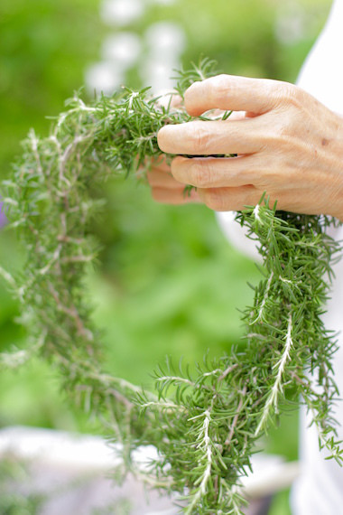ローズマリーのそのまま丸めたリース 花と犬のbonne Idee