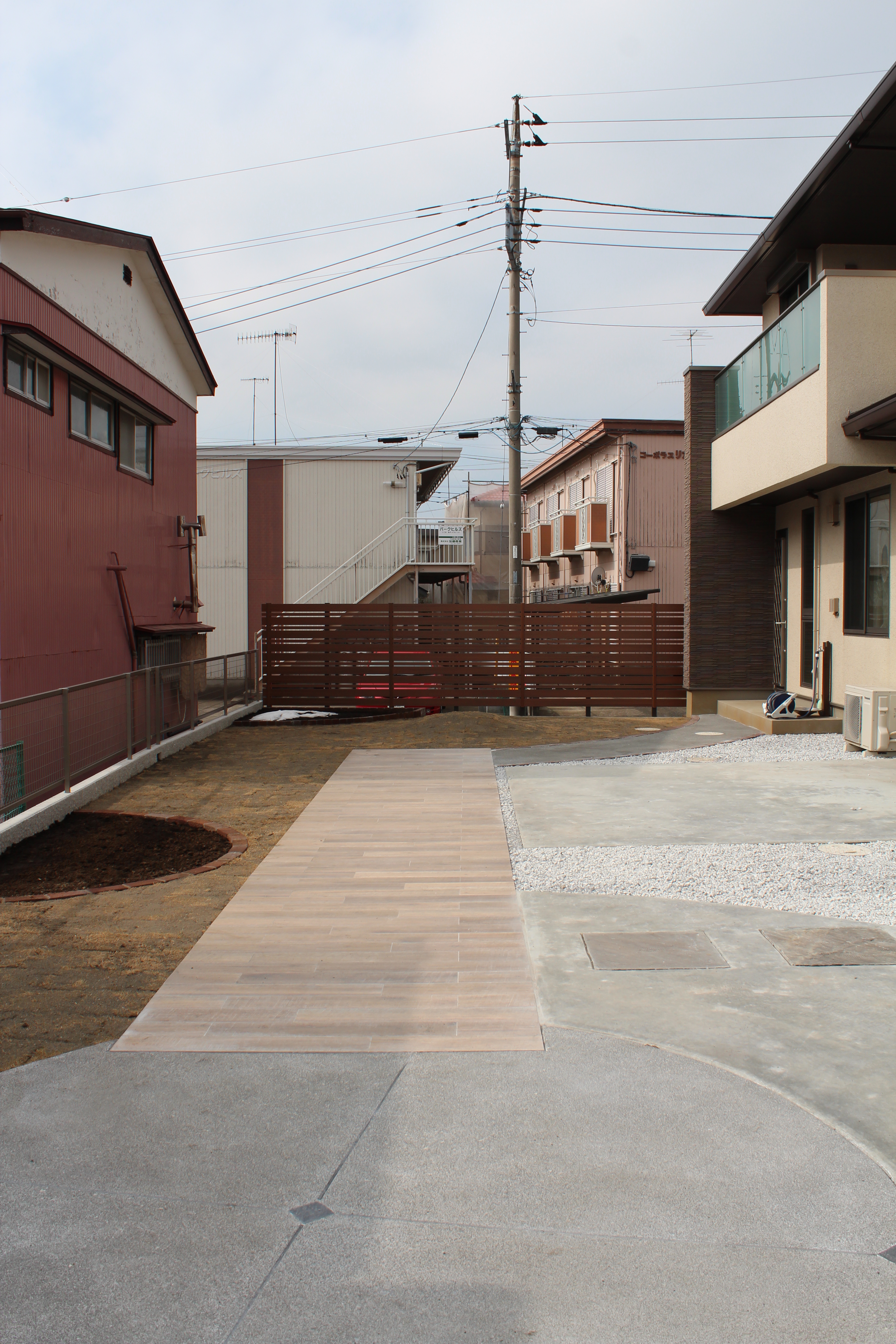 五泉市 新築外構植栽工事 シックな目隠しフェンスとアプローチ 新潟県阿賀野市 庭 エクステリア 外構 雅楽庭 新光園
