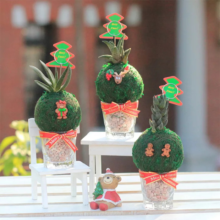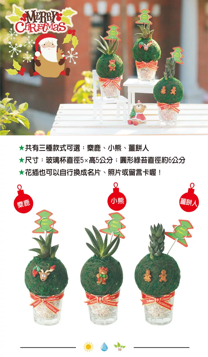博客來 迎光 迷你耶誕多肉綠苔球三入組合